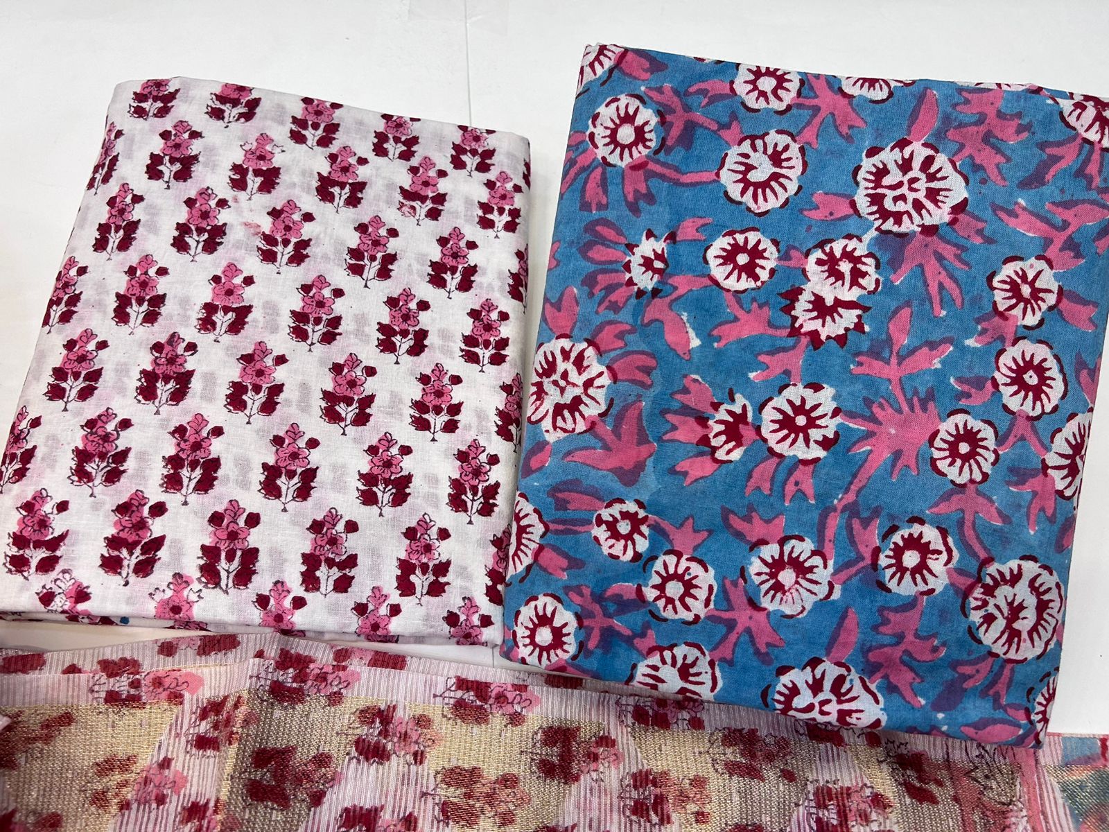 Hand Block Printed Cotton Suit with Kota Doriya Dupatta