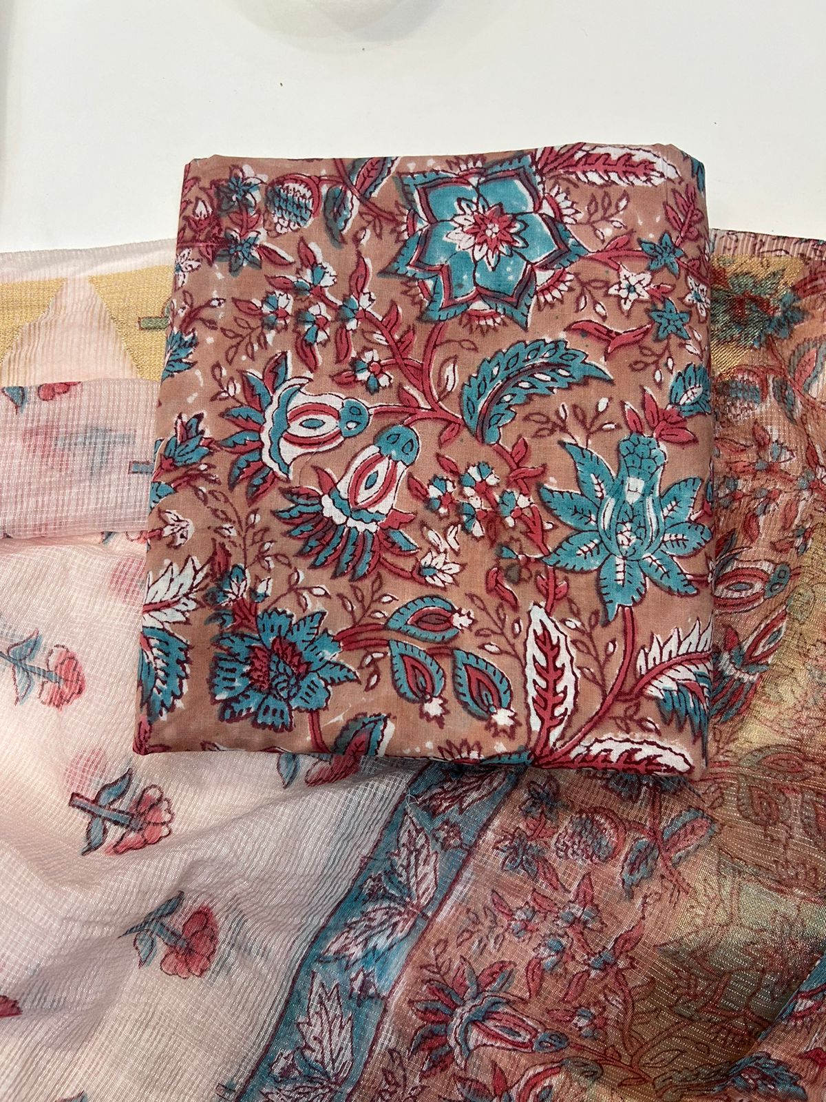 Hand Block Printed Cotton Suit with Kota Doriya Dupatta