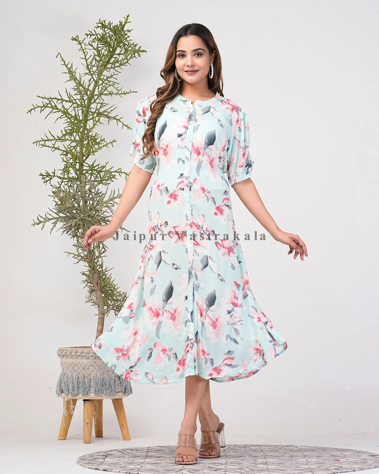Crepe Printed Knee Length Midi Dress