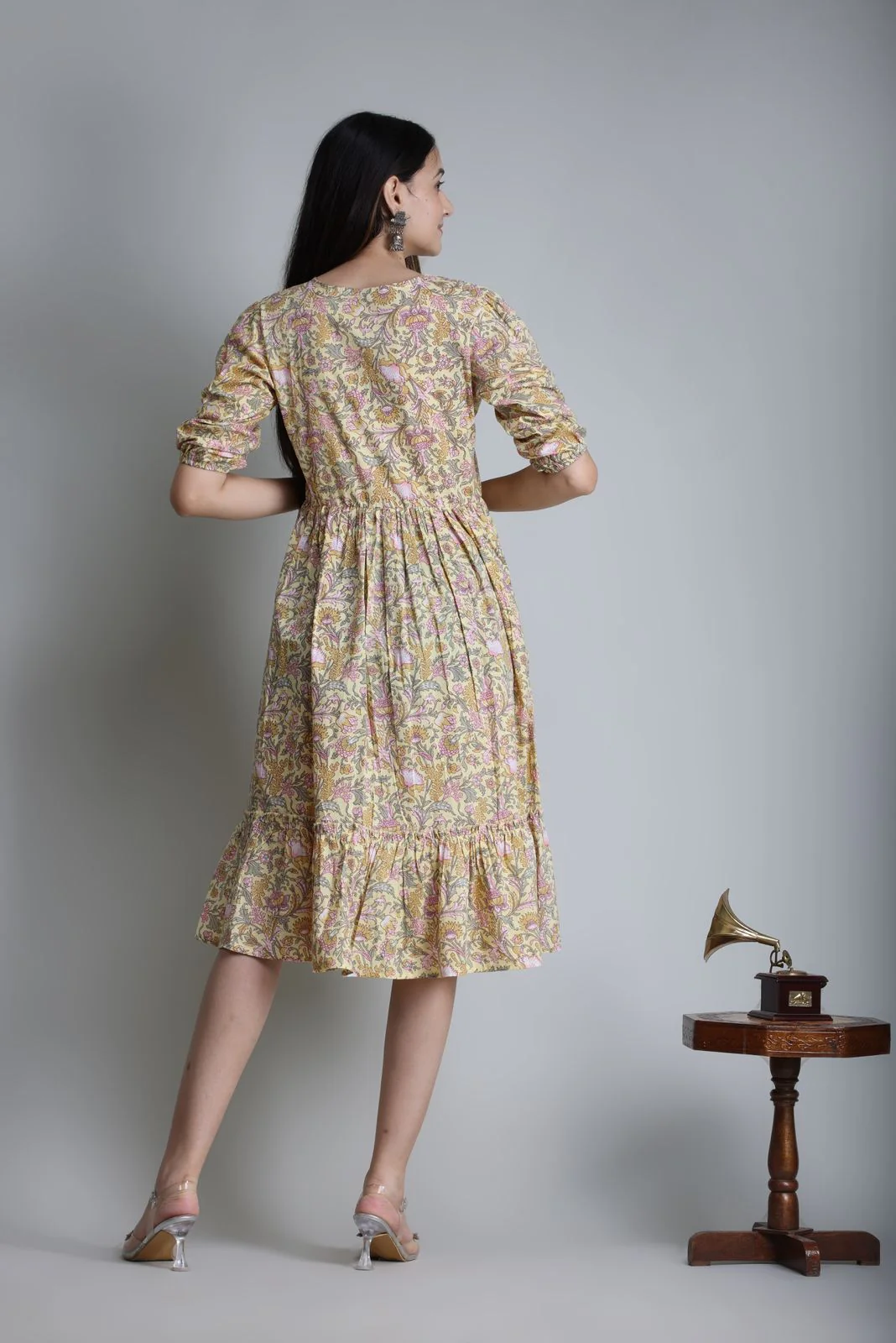 Cotton Printed Knee Length Midi Dress