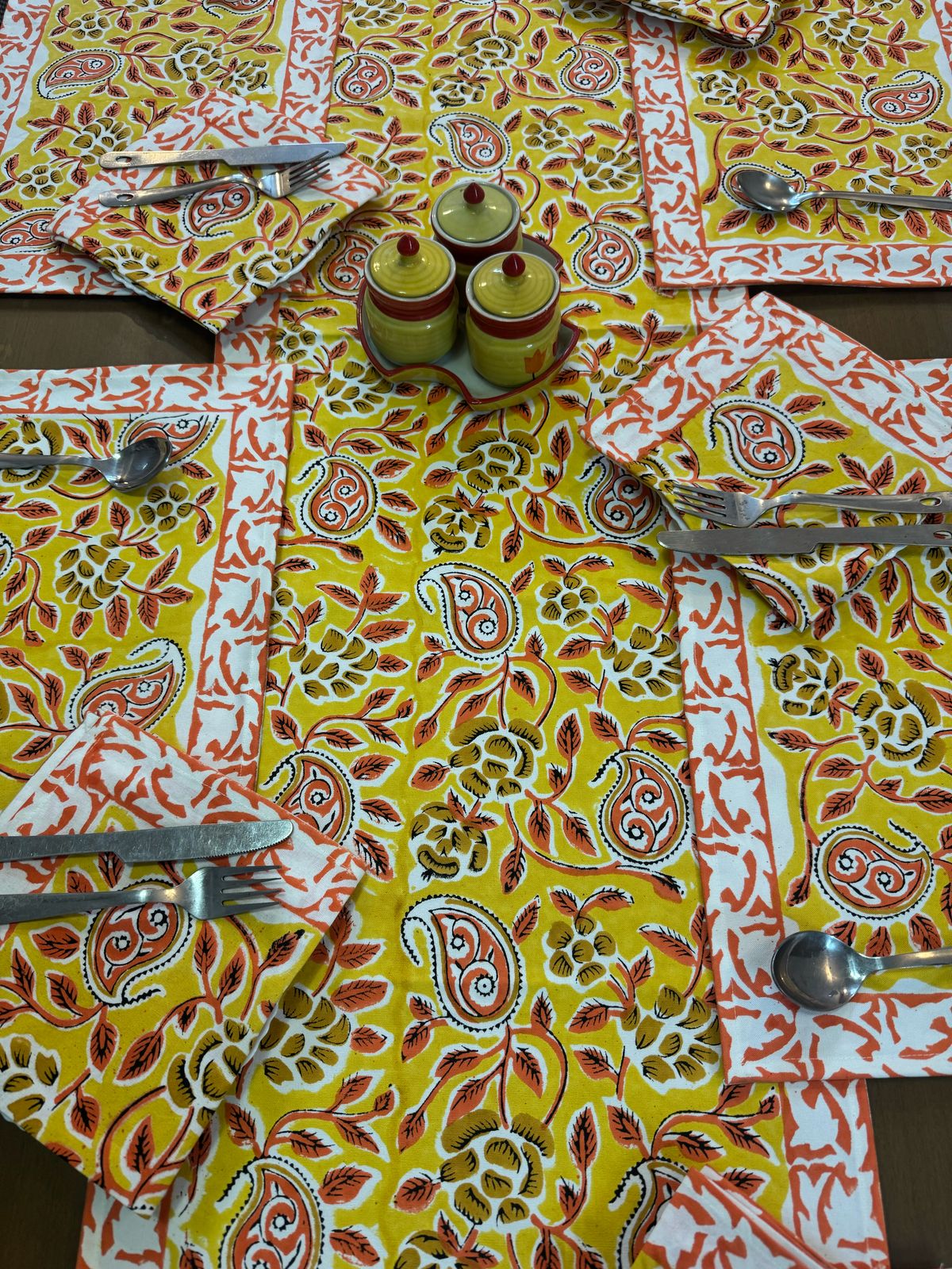 Marigold Paisley Dining Set - Runner + 6 Mats + 6 Napkins