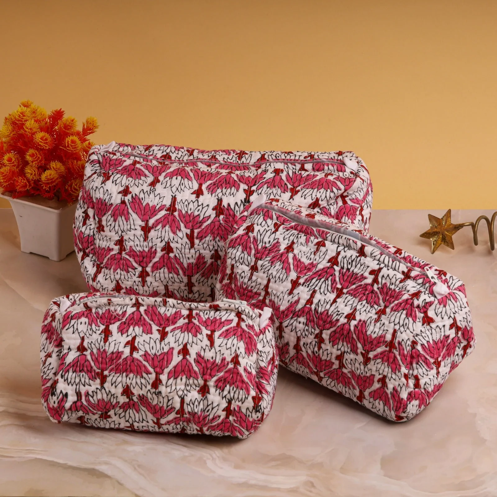 Cotton Printed Quilted Utility Bag (Set of 3)