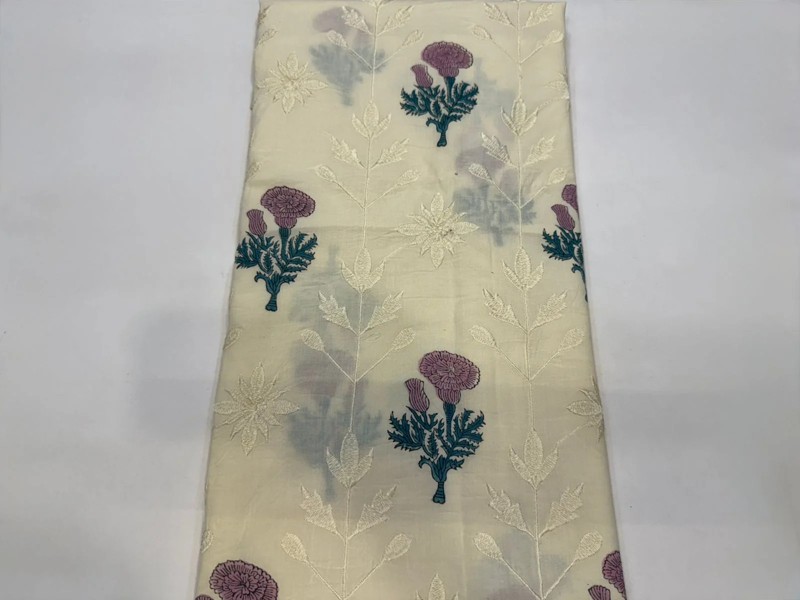 Cotton Self Embroidery Block Printed Suit with Mul Mul Dupatta